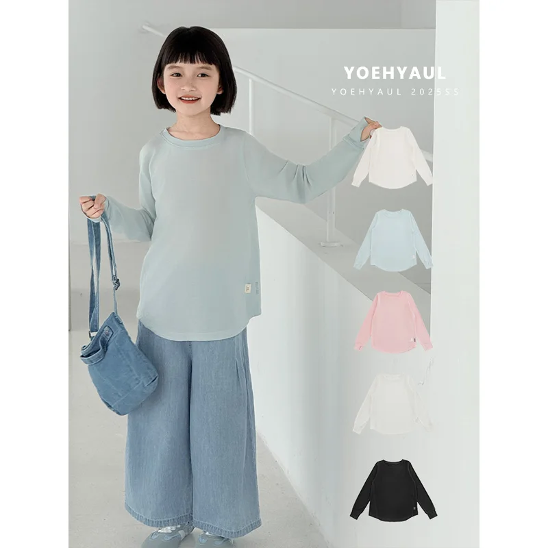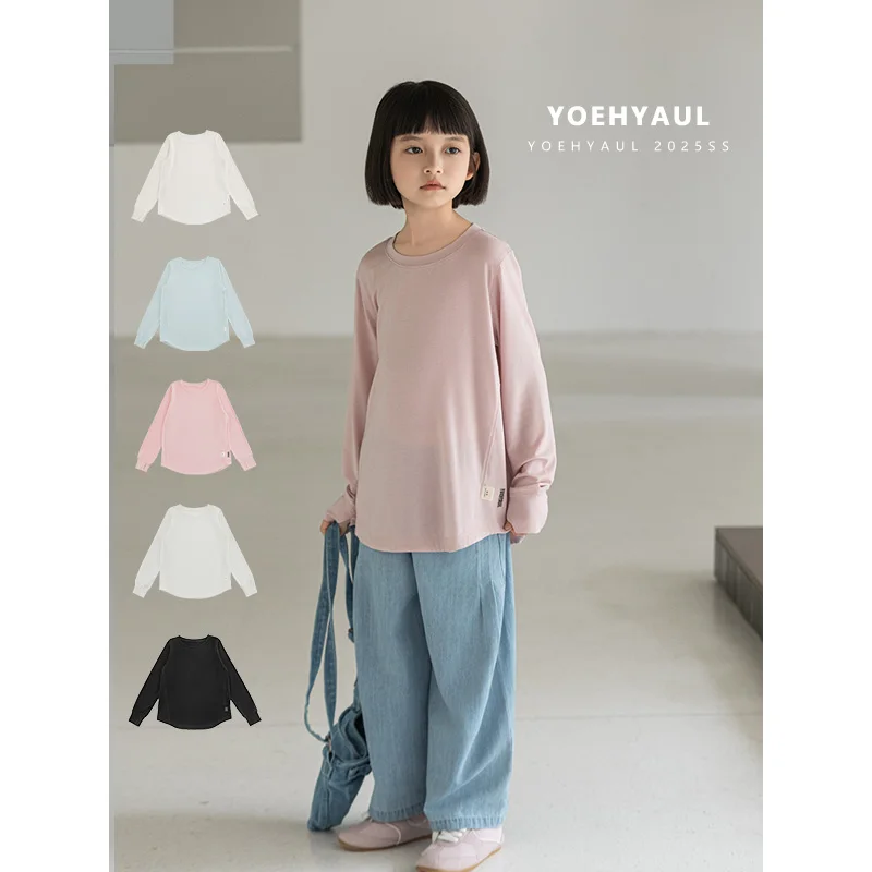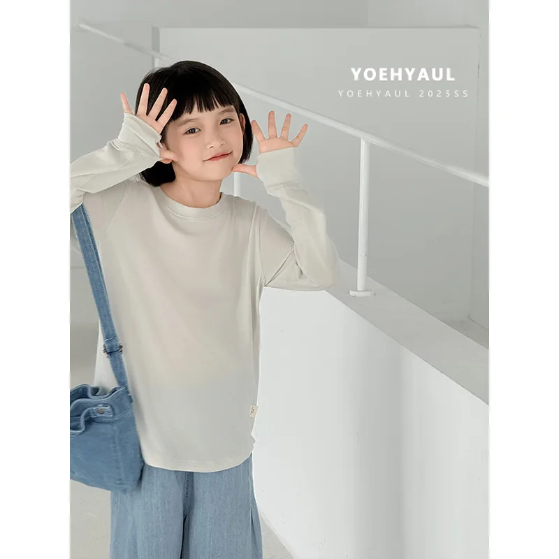 YOEHYAUL CD1420 94% Lyocell Long Sleeve Sunwear T-Shirt Girls Solid Color T-Shirt Ice Silk Soft Breathable Teen Tops